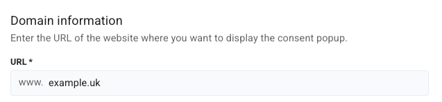 4. In Domain information, go to URL*, enter the website URL where you want the cookie banner displayed.