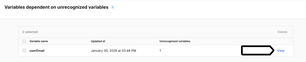 Note: Variables dependent on unrecognized variables mean that this variable depends on one or more variables that haven’t been created yet, aren’t defined, or were copied from another site or app.